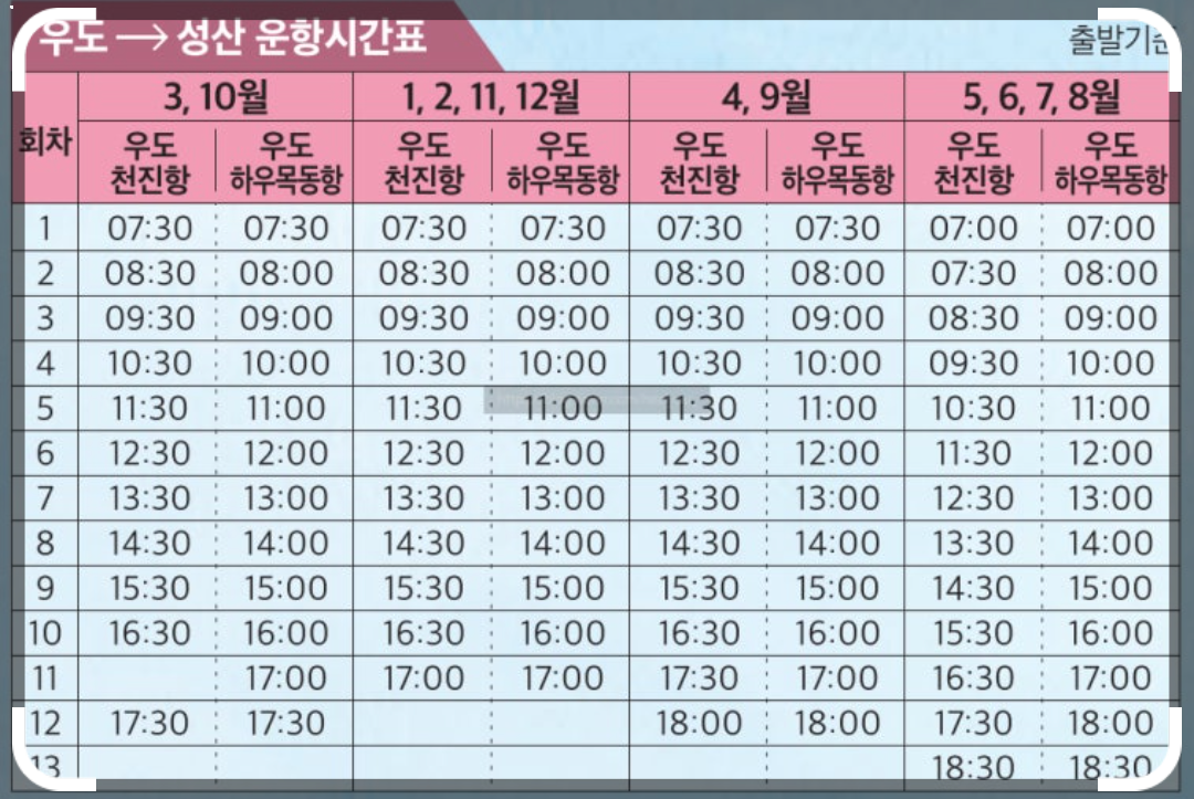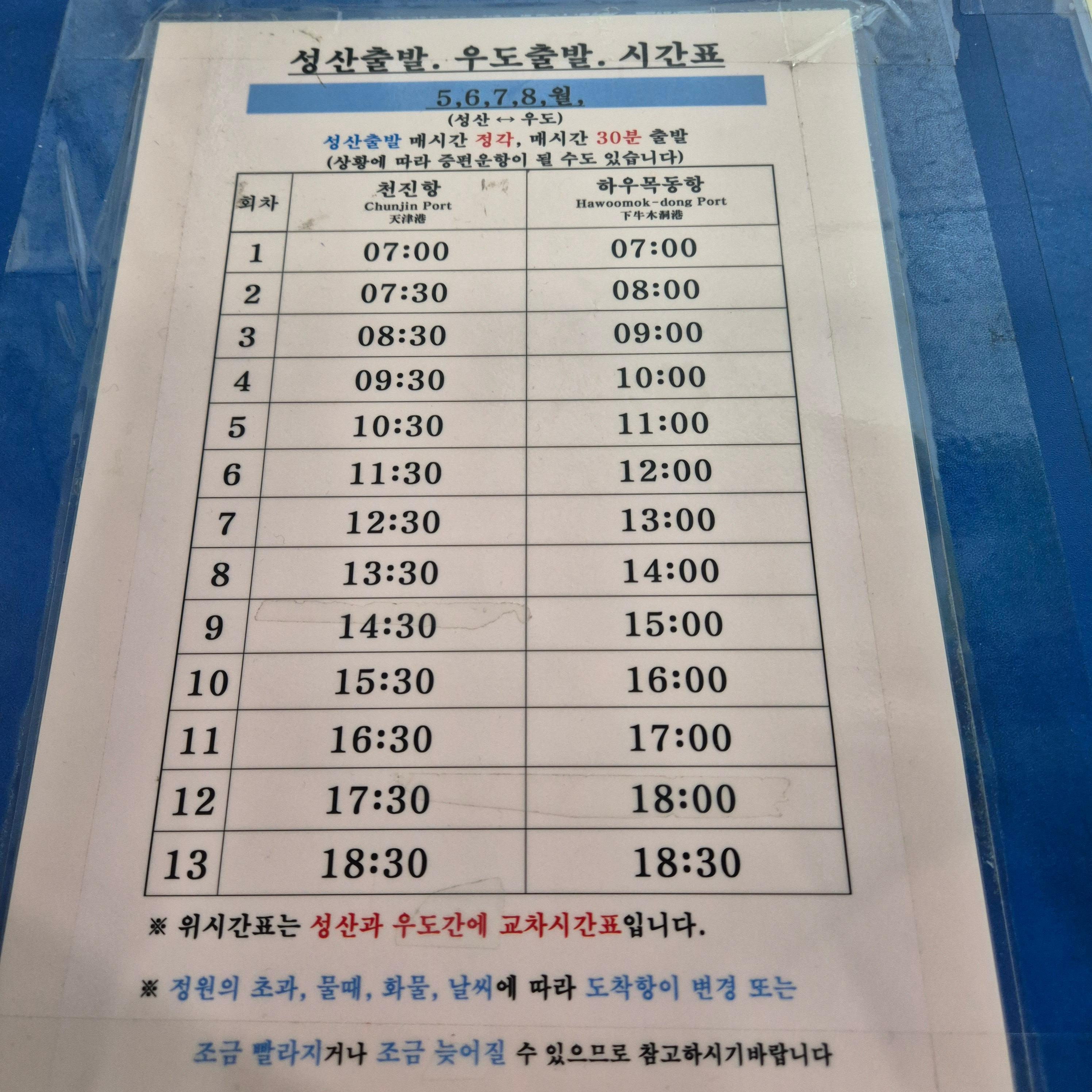 - 성수기 에는 사람이 많아 미리 도착하여 여유 있게 출발하는 것이 좋습니다.